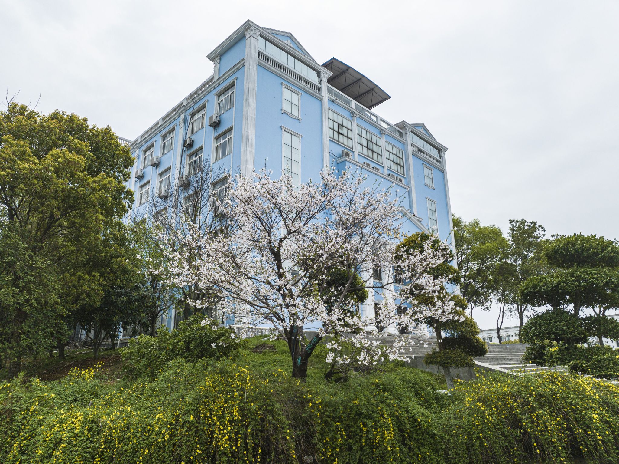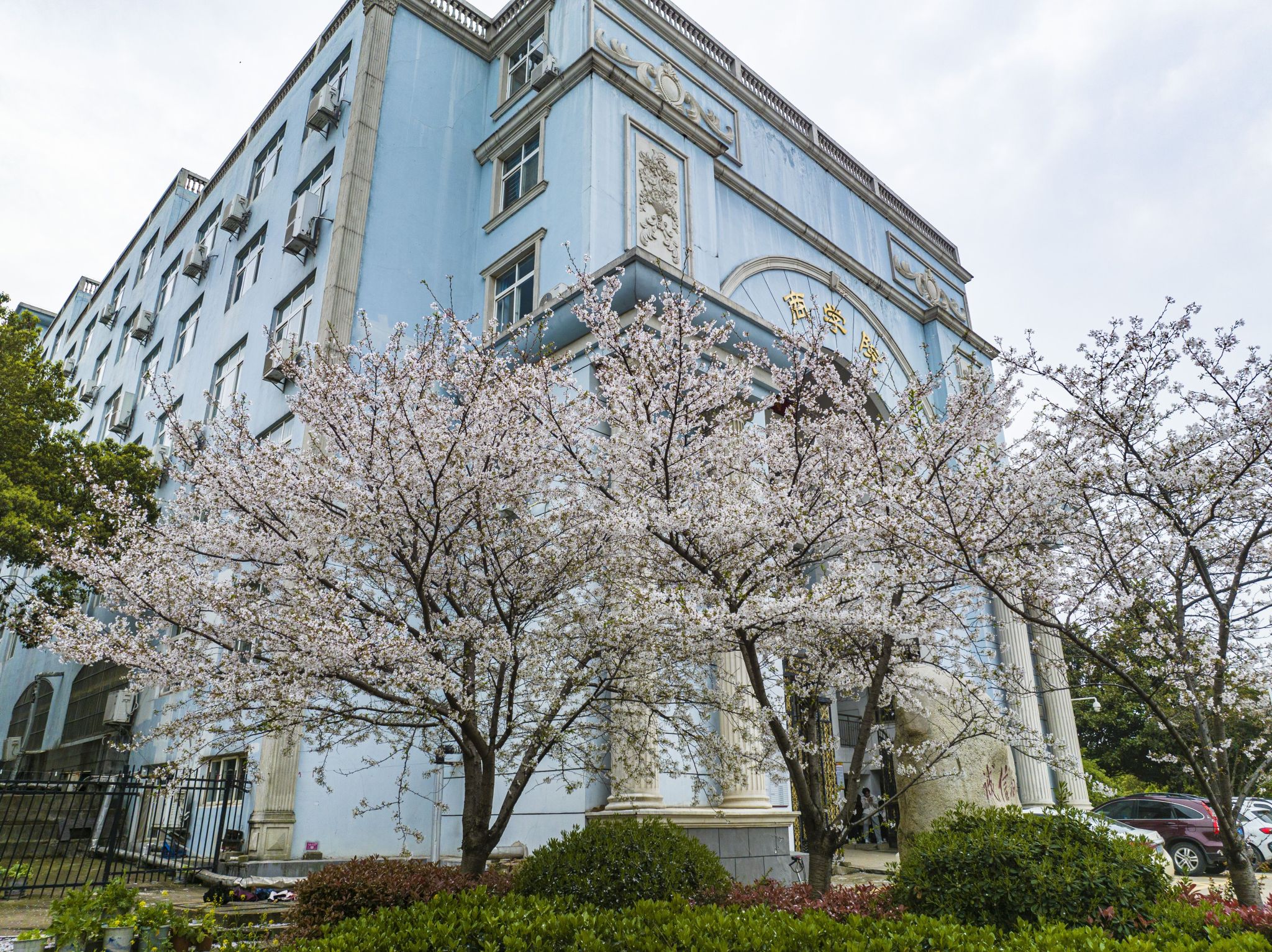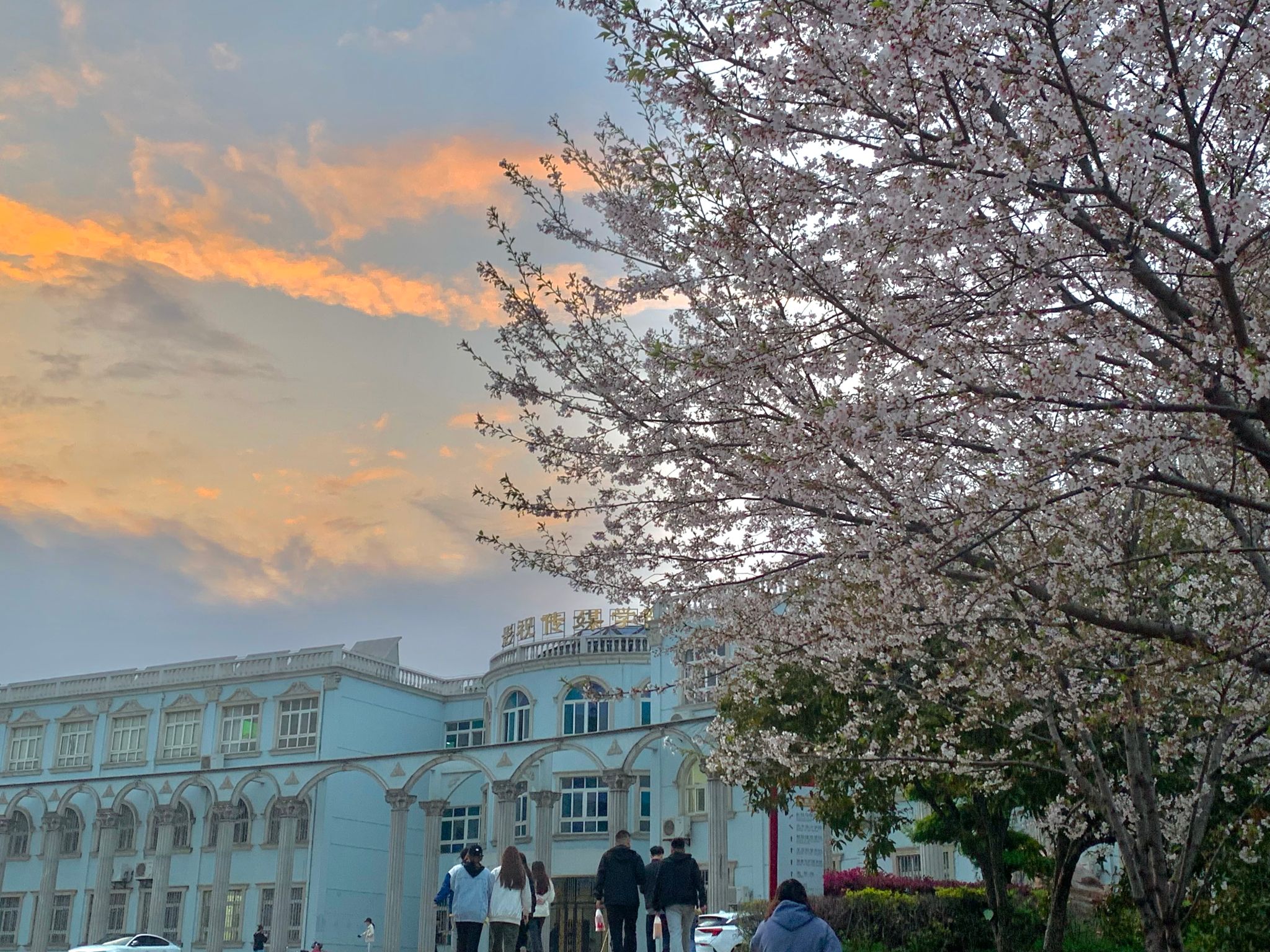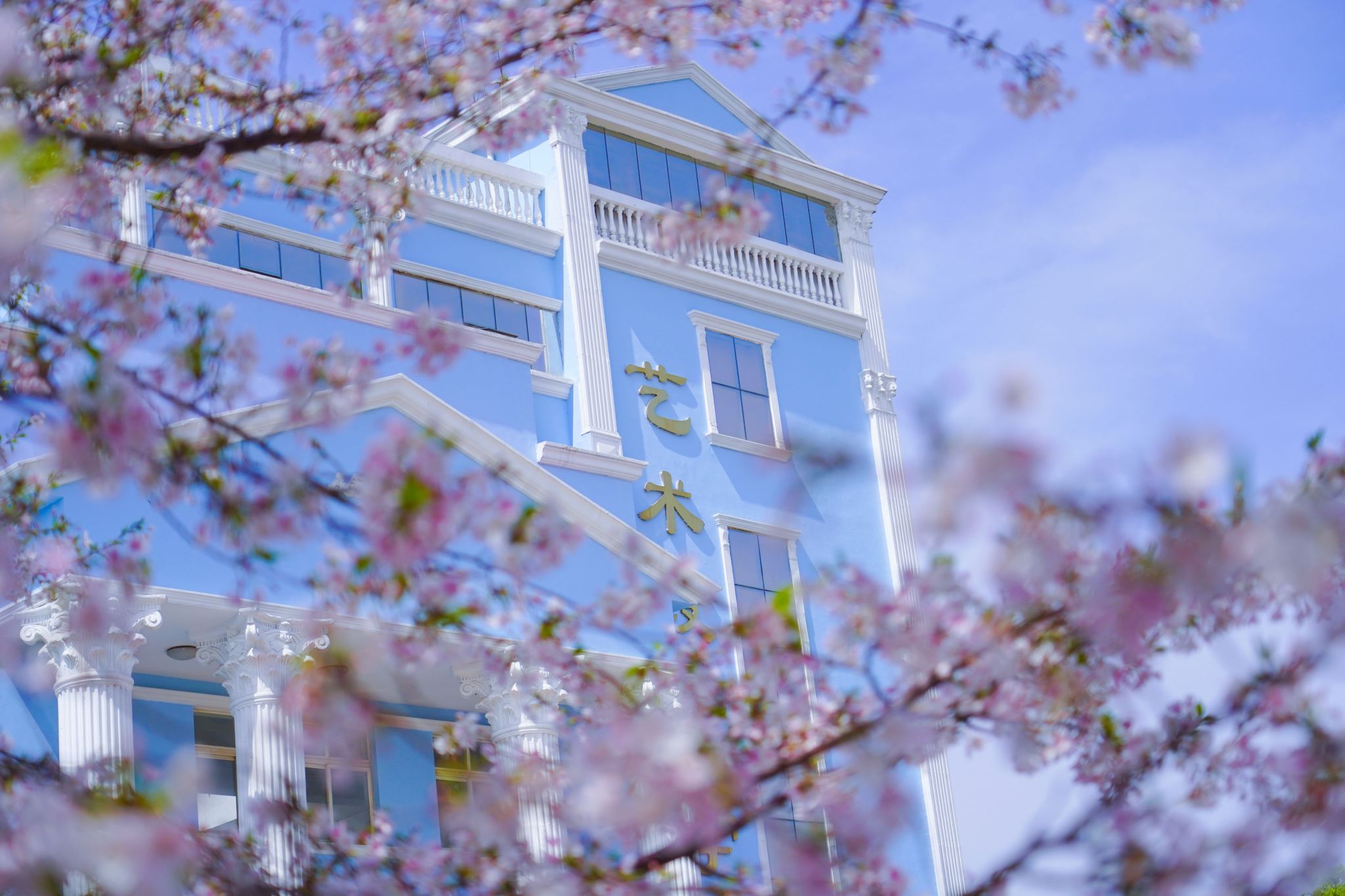易雅文摄影作品:3200威尼斯vip的早樱和蓝色校园△